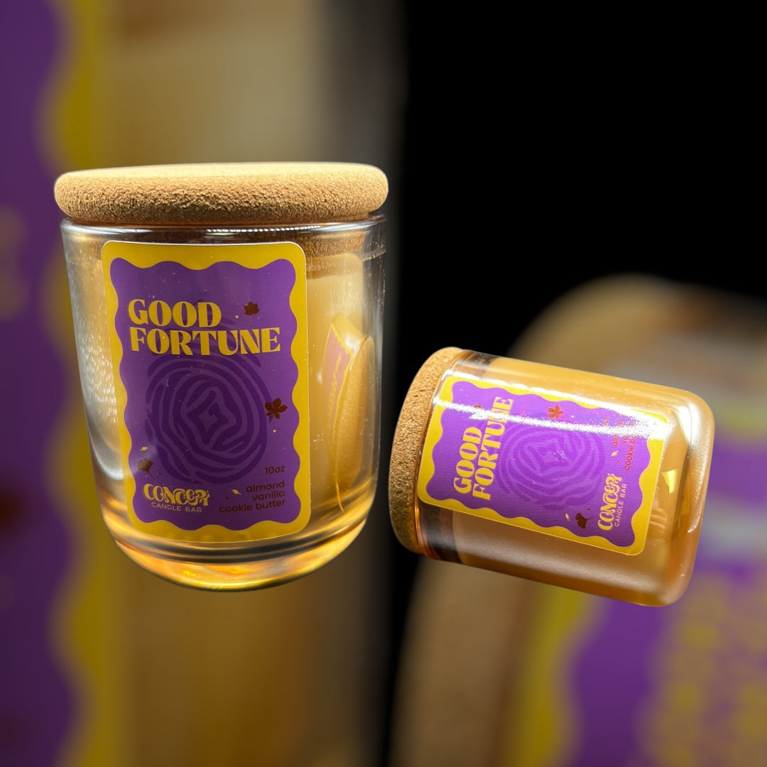 Good fortune is the cherry almond cookie bliss, and a good luck charm in a candle, that you didn't know you needed!